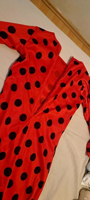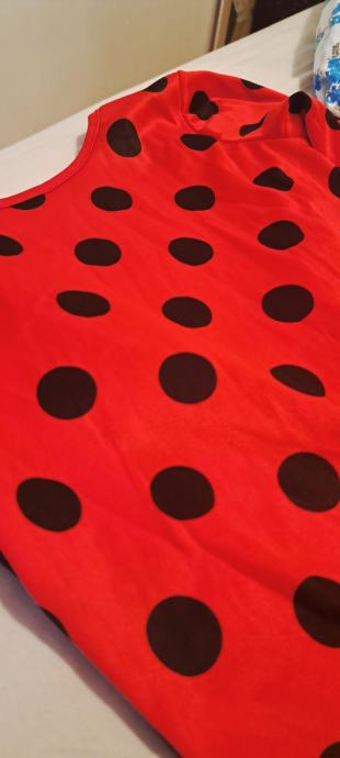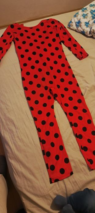 Prodajem kostim bubamara za djecu, crvene boje s crnim točkicama. Jednodjelni kostim s dugim rukavima i nogavicama, pogodan za maškare i karnevalske zabave.