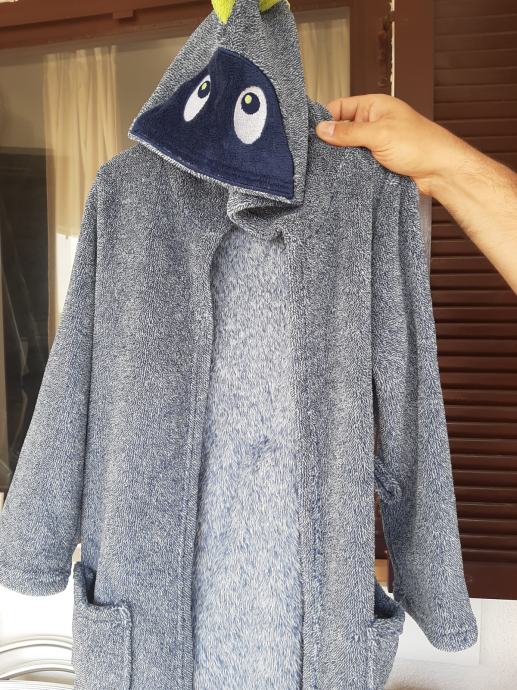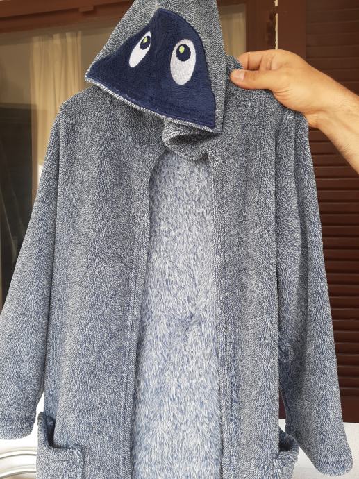 Knot so bad kućni ogrtač od flisa sa kapuljačom, veličina 122. Mogu ga koristiti i djeca do 128cm bez problema. Nošen svega nekoliko puta