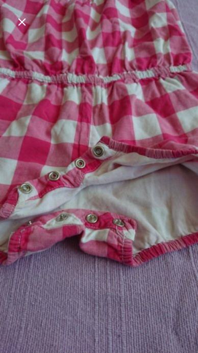 preslatki na crveno bijele kockice koji je nošen dva puta, marka Jacadi Paris, na dnu ima kopčanje na drukere što olakšava mijenjanje pelena / odlazak na wc, te se na naramenicama može skratiti tj produžiti pomoću gumbića, dužine od ramena do dolje cca 44-45cm, slatko stoji, baš idealan za male dame za ljeto.