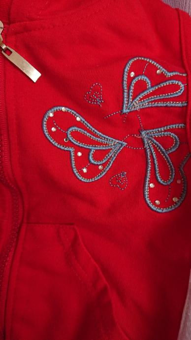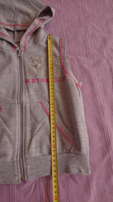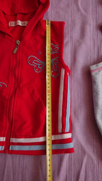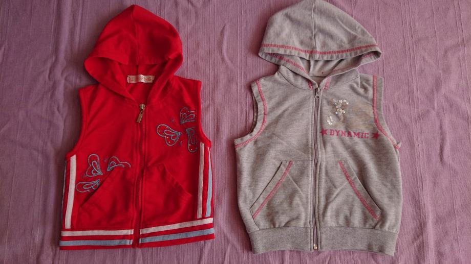 Prsluk za curice, crveni br. 92 i sivi br. 98, oba sa svjetlucavim detaljima (vidjeti slike) i kapuljačom, crveni dužine cca 34cm, sivi dužine cca 36cm, pamučni, udobni, jako lijepo stoje, pašu na sve.