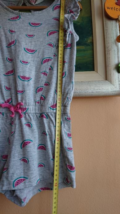 3. Sivi vel. 116, dužina cca 50cm, sa rozom mašnicom naprijed i sa uzorkom lubenica - 5 EUR.