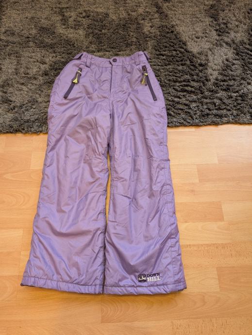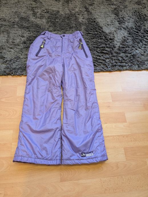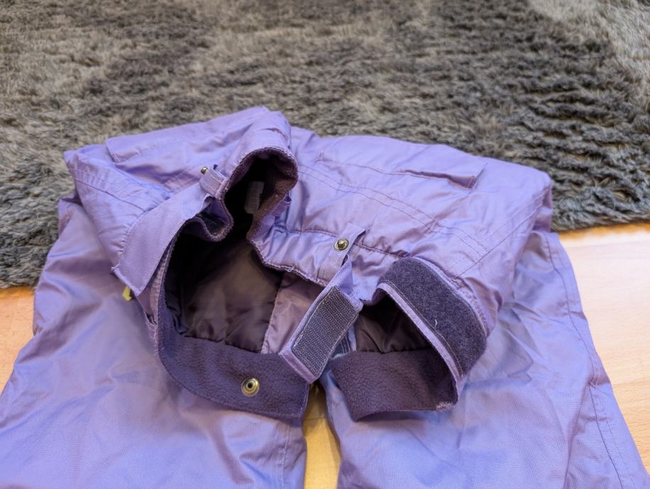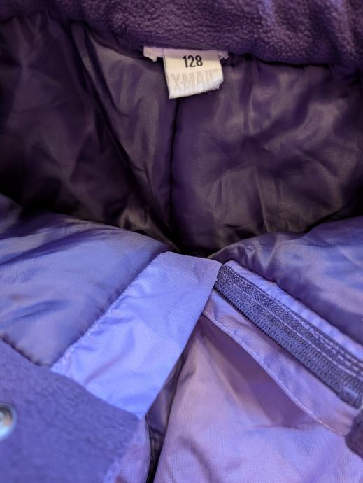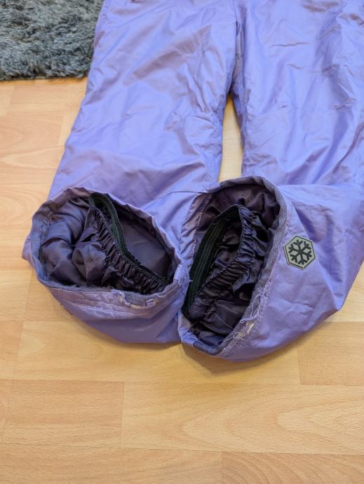 Skafander hlače br. 128 za djevojčice, pretežno ljubičaste boje, mogu se podešavati oko struka, na nogavicama imaju suženja - unutarnja podstava koja se može staviti preko buce da bude toplije, imaju dva džepa naprijed i dva otraga, vrlo su tople, jako mekane i udobne.