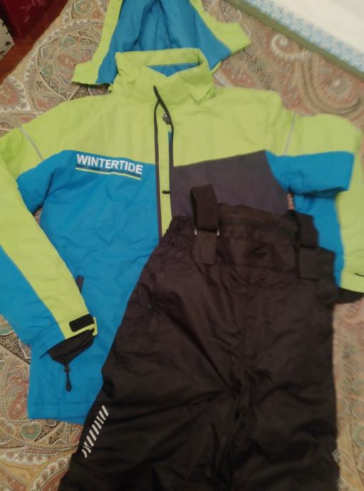 Skijaški komplet za dječaka, sastoji se od jakne i hlača sa tregerima koji se mogu regulirati.