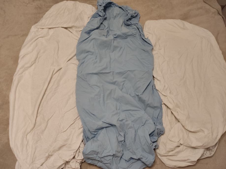 Tri plahte za dječji krevetić, dvije bijele i jedna plava. Uz njih na poklon jastučnica sa zadnje slike. Plahte su korištene i zato niska cijena. Pogledajte i ostale moje oglase, na više kupljenih stvari popust.