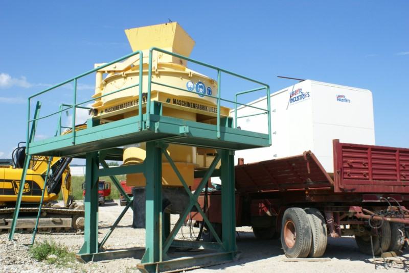Udarno-rotacijski mlin za proizvodnju pjeska i drobljenaca iz srednjetvrdog i tvrdog kamena, pogotovu za premeljavanje nadfrakcija.