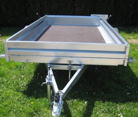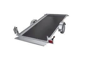 Prikolica Uni platforma sa stranicama 20cm, navoznom rampom i pomoćnim kotačem na rudu.