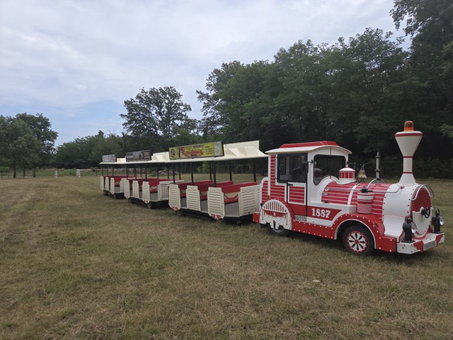 Turistički vlak komplet, Dotto F87 + 3 vagona u jako dobrom stanju, komplet restauriran prije 3 godine, potpuno ispravan te odmah spreman za obavljanje djelatnosti, registriran do 25.11.2026. Motor zamijenjen prilikom restauracije. Kočnice zračno-hidrauličke, sjedišta komplet obnovljena. Vrijedi pogledati onome tko treba dobar vlak za rad. Vozilo je na fizičku osobu te kupac ne plaća PDV prilikom kupnje.