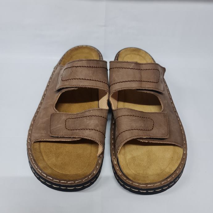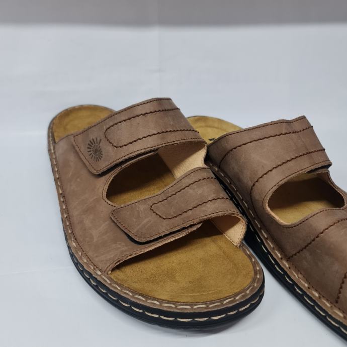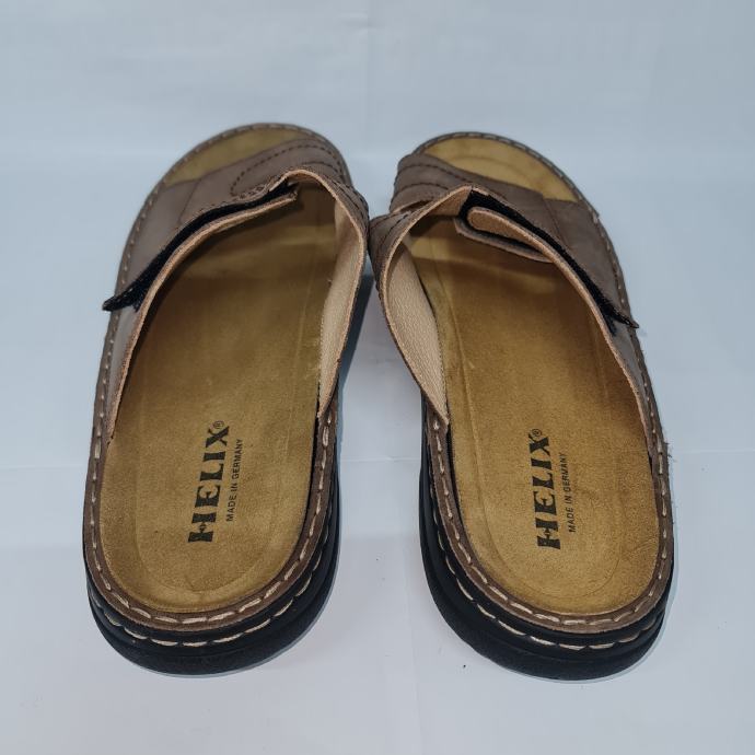 HELIX smeđe kožne natikače na čičak s uklonjivim uloškom