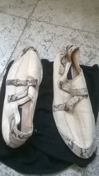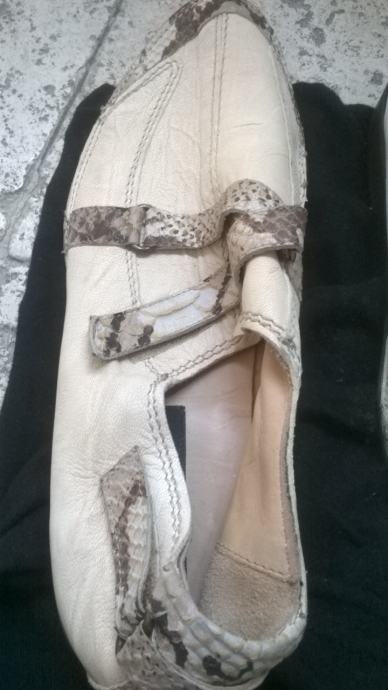 NOVE KOŽNE, MEKANE ,KREM MOKASINKE ,SA UKRASIMA OD ZMIJSKE KOŽE , BROJ 42 , JAKO UGODNE, MARKE LE FOLLIE TALIJANSKE