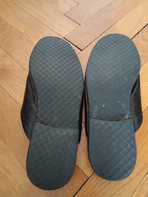 Prodajem muške kožne, crne šlape br. 44 ( gazište 28 cm). Šlape su malo nošene pa izvana izgledaju kao nove, a na podstavi ispod kože malo se vidi da nisu nove.