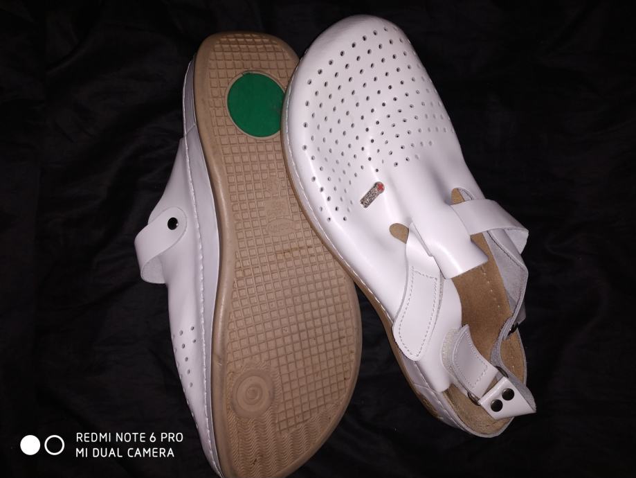 Prodajem muške nove kožne bijele medicinske anatomske papuče Leon broj 45 sa remenom za petu, cijena 30 EUR.