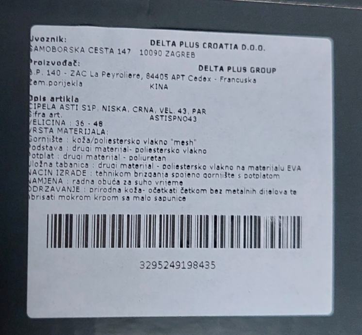 Nove radne cipele sa zaštitnom kapicom, originalno pakiranje. DELTAPLUS br. 43 crne