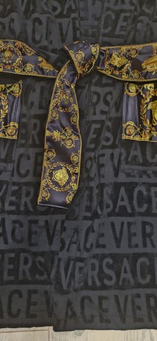 Kucni ogrtač kvalitetan težak bademantil Versace 100% pamuk - frotir debeli mekani materijal kao ručnik slova reljefna izbočena džepovi i remen od svile Versace medusa cak unisex model vel univerzalna XL-XXL NOVO unutranja etiketa odrzavanja nedostaje ne vidim je ili je ne mogu pronaci mjere po upitu ako treba al unisex model i univerzalna velicina od XL-XXL ( odgovara za visinu od cca 180-190 cm i 90-120 kg) - iako odgovara i za vel L.jer u pravilu kucni ogrtači se nose loose komotno i velicine su univerzalne ovaj odgovara od L-do XXL original dobiven na poklon u original vrecici - izvadjen samo za slikanje NOVO!