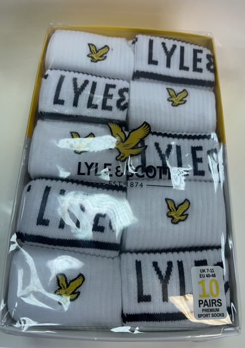 Lyle & Scott čarape (10 pari) NOVO LEE - Obične sportske bijele Račun