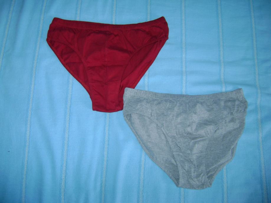 Dvoje gaća su u tamno sivoj boji,jedne svjetlo sive, a jedne su crvene.