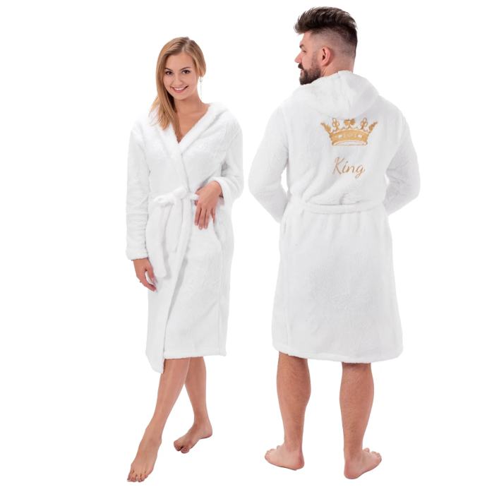 Mekani, plišani kućni ogrtač. Savršen suputnik za svježa jutra i duge večeri. Dužina do koljena čini je savršenom za jesen i zimu. Traka pričvršćena za ogrtač omogućuje podešavanje njegove širine.
