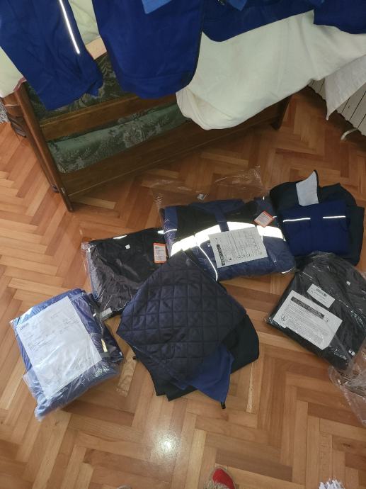 Prsluk zaštitni postavljeni,jakna zaštitna,,deblja zimska jakna, tanja jakna, V.zaštitna,kišnoj odijelo,termo podstava za hlače,topla jakna s odvojivim prslukom, polo majice dugih i kratkih rukava.