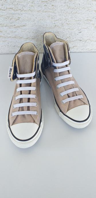 Tenisice imaju čičak i žniranci su od gume.Jednostavne su za obuvanje,jer se ne vežu.