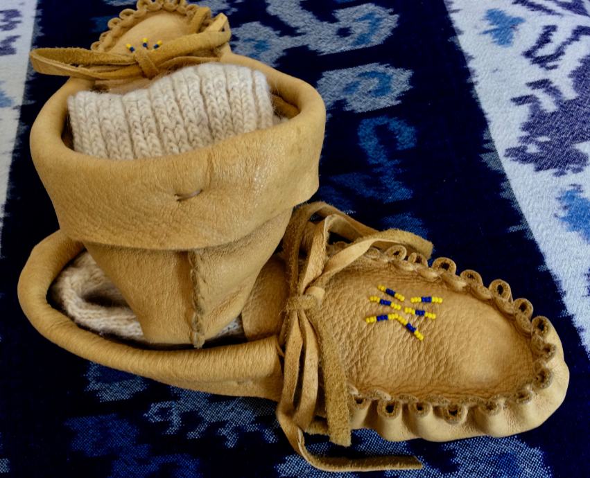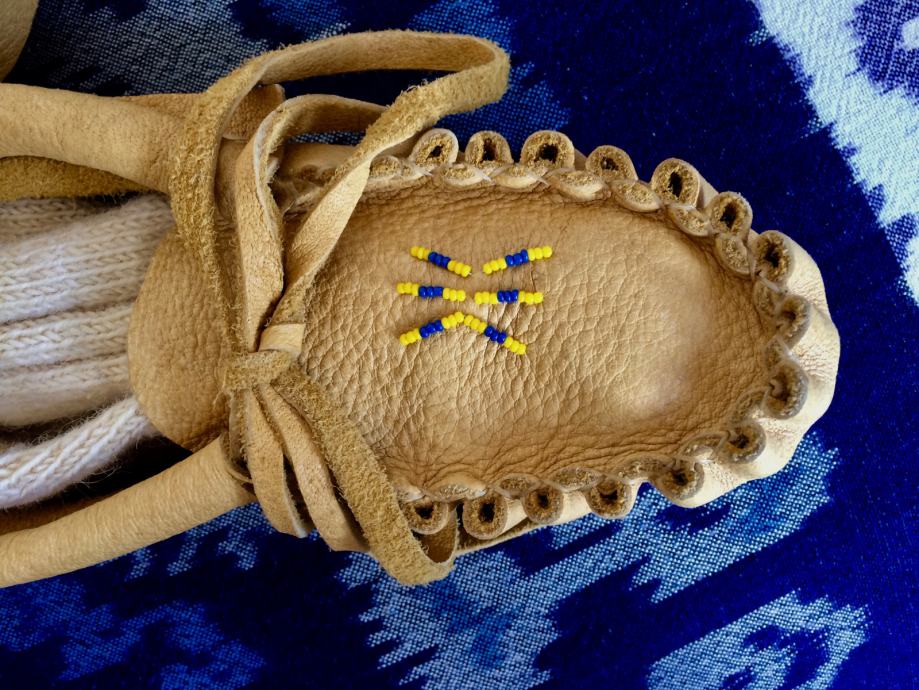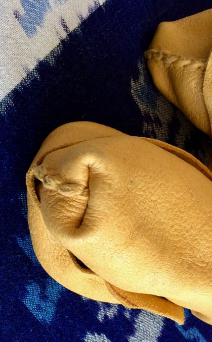 Srednja veličina, od 38 do 40, od fine, mekane kože, ugodne kao rukavice, ručni rad, sajam Indijanaca.