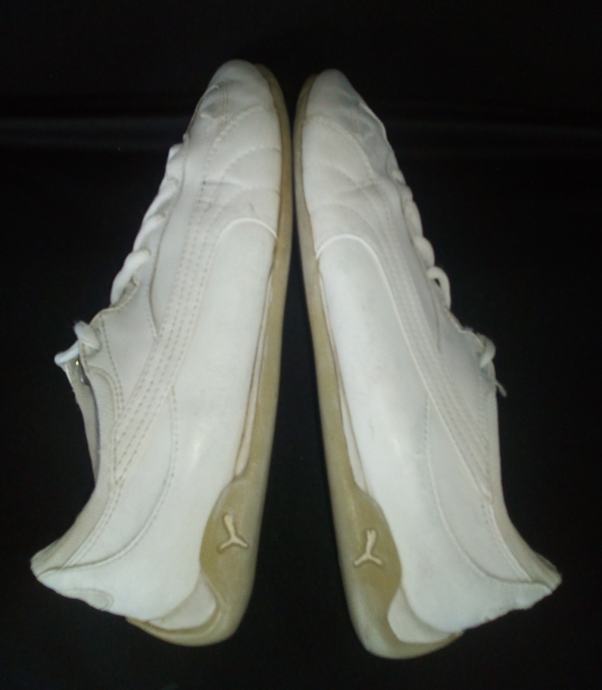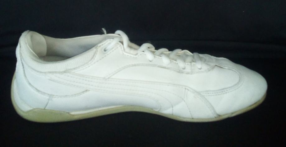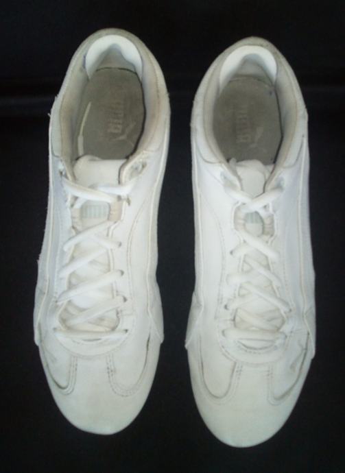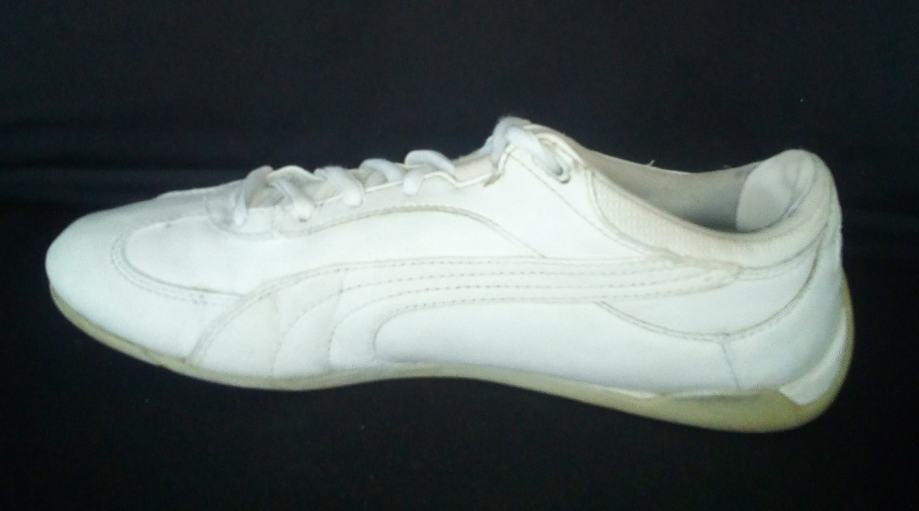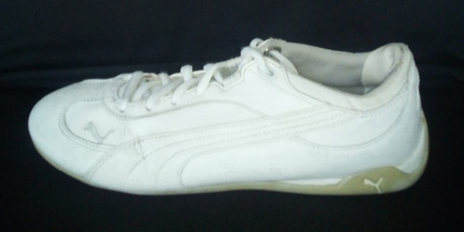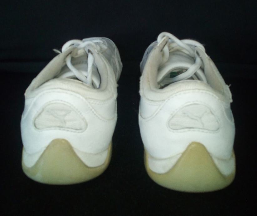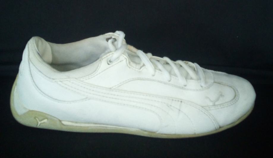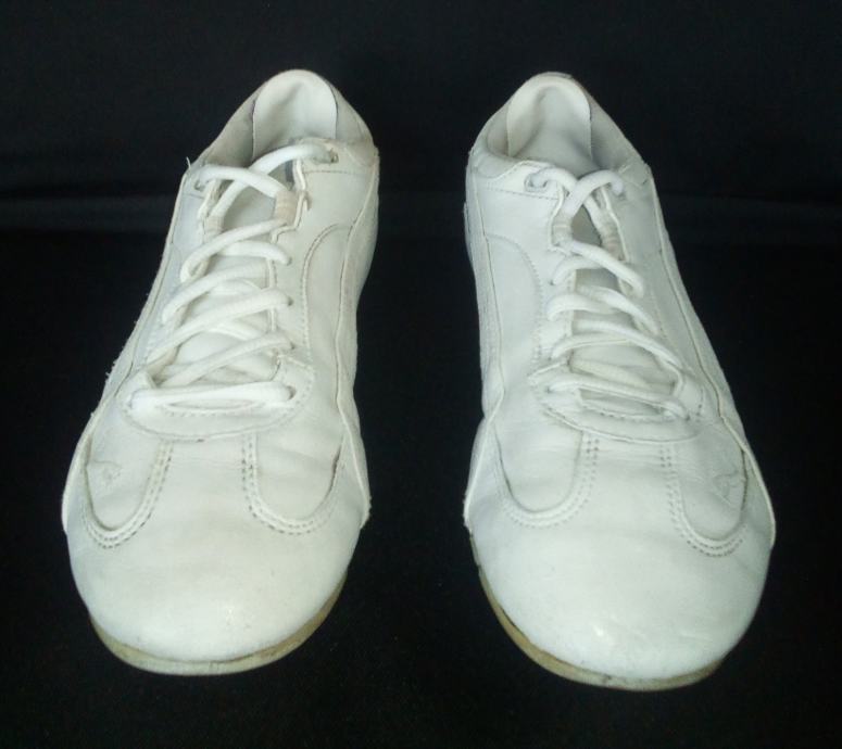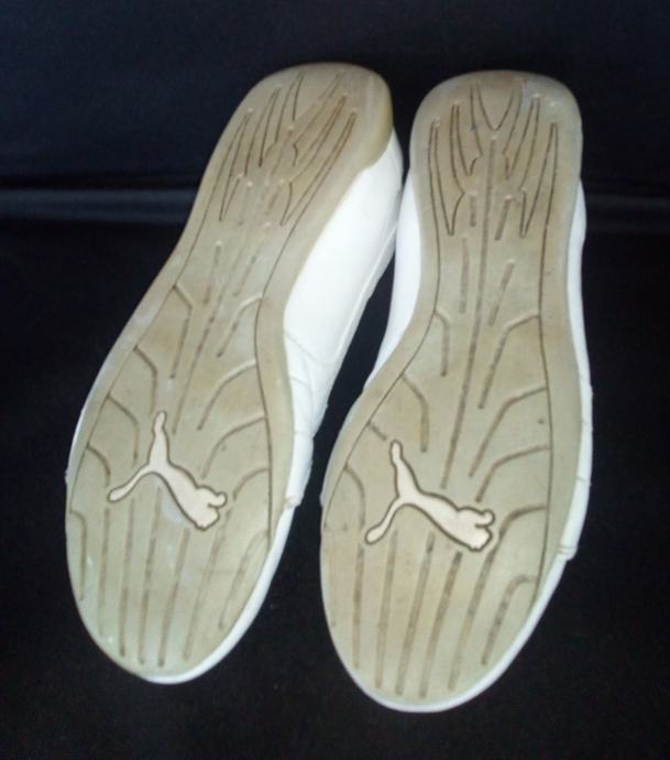 SNIŽENO! PUMA bijele tenisice, od prave kože, za djecu i odrasle. Gazište 24 cm (po Puma tablici veličina 38, ali realno 37.5). Očuvane, postolar pojačao unutarnji gornji dio pete.