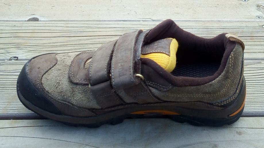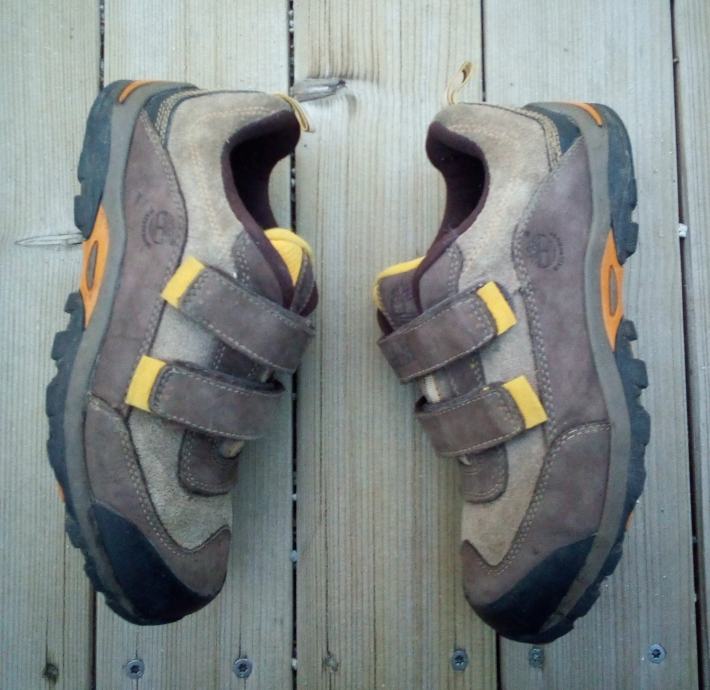 POVOLJNO! Timberland WATERPROOF cipele na dva čička, junior veličine 37 (od 9 do 13 godina). Izrađene od prave kože, dijelom glatke, dijelom brušene, sa deklariranom vodootpornošću. Iznutra deblji spužvasti sloj. Prilično očuvane, bez oštećenja.