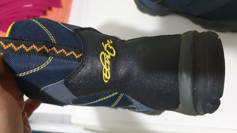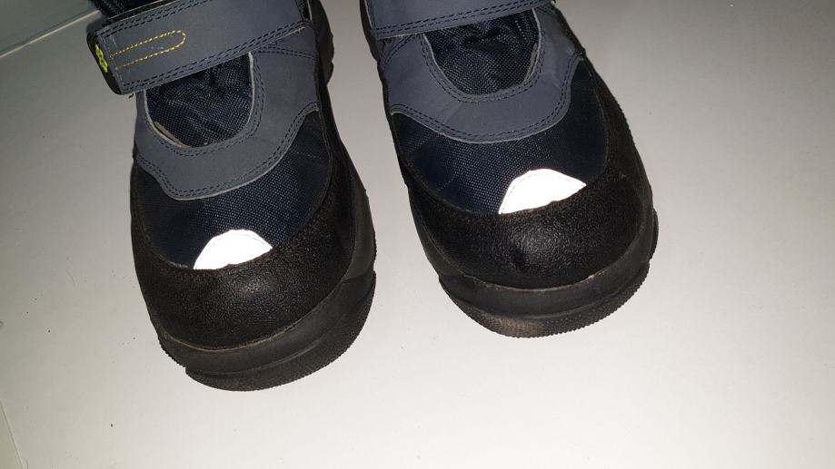 Visoke gležnjaće cipele ćizmice vodootporne sa reflektirajućim detaljem na vrhu prstiju koli svijetli kada je obasjan svjetlom. Vezanje na čićak.