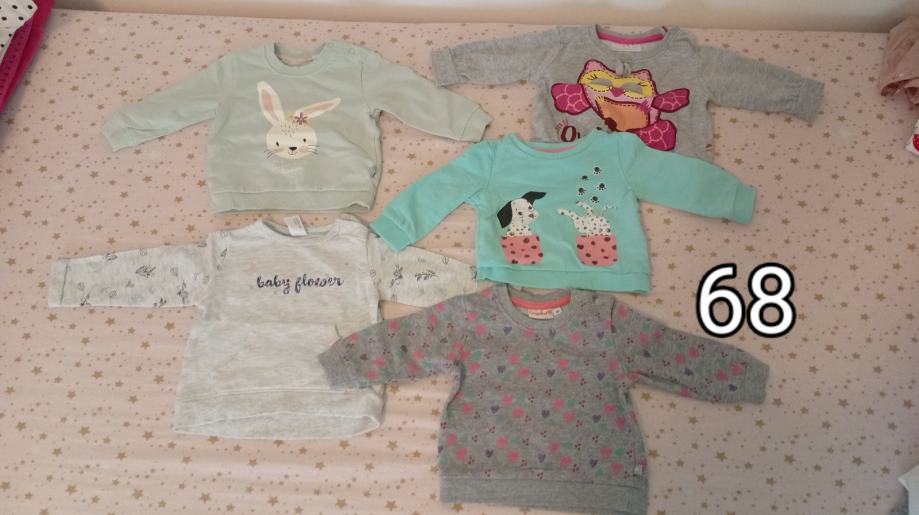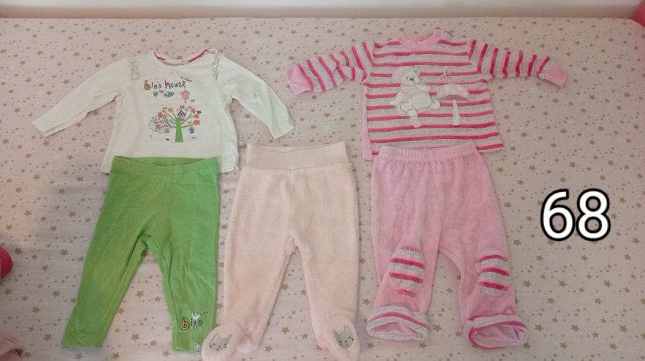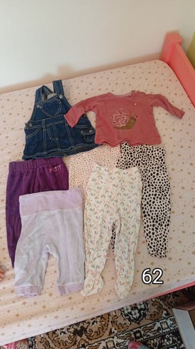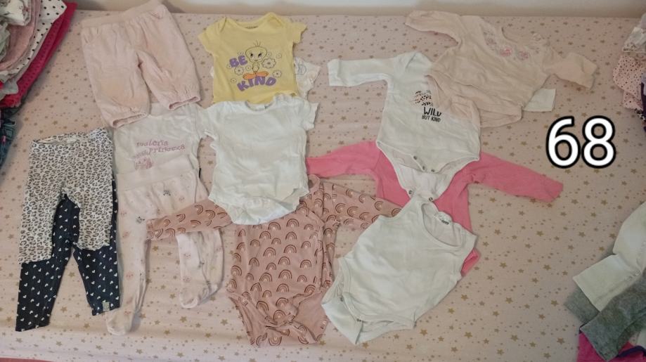 Odjeća za jesen/zimu.odjeca se nalazi u dvije kutije nije vise stalo slika. Ima puno odjece tajice ,kompletici bodi dugi i kratki,majice,štrample jaknica za jesen malo patent popustio, haljina traper, piđame,romper ,kapice,papucice slinceki,partikle.
