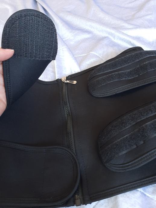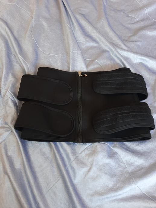 Crni novi elastični pojas sa zatvaračem i dvije trake sa čičkima za zategnuti. Vel. 36-38