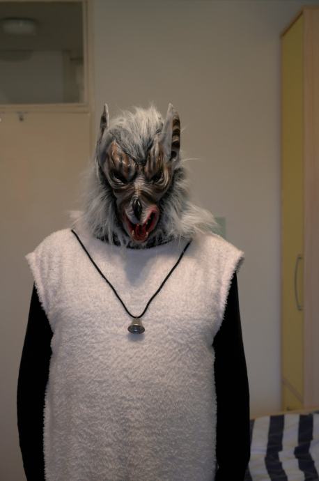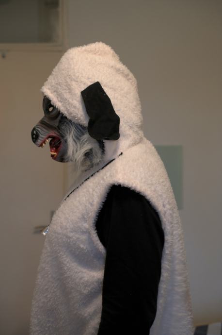 Prodajem vrhunsku fašničku masku vuka za cijelu glavu (kvalitetna, gumena) + janjeće odijelo s kapuljačom.