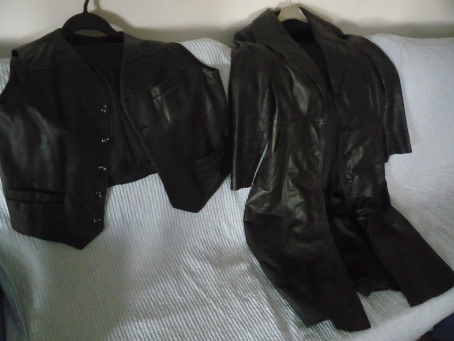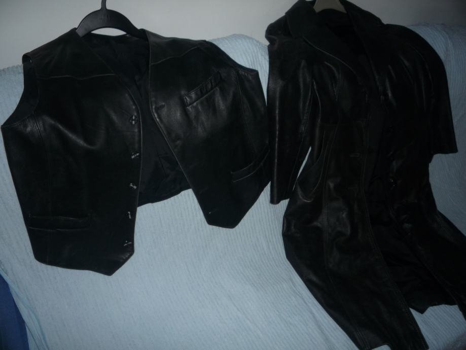 muski kozni prsluk - kozna jakna -zenski kozni dugi mantil - kao novo
