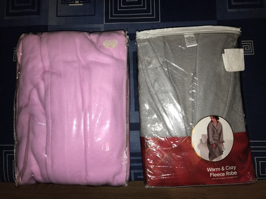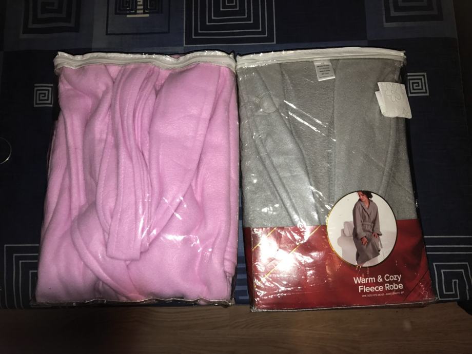 Kućni ogrtači - roza i sivi, univerzalna veličina, materijal flis, novi, nekorišteni, zapakirani.