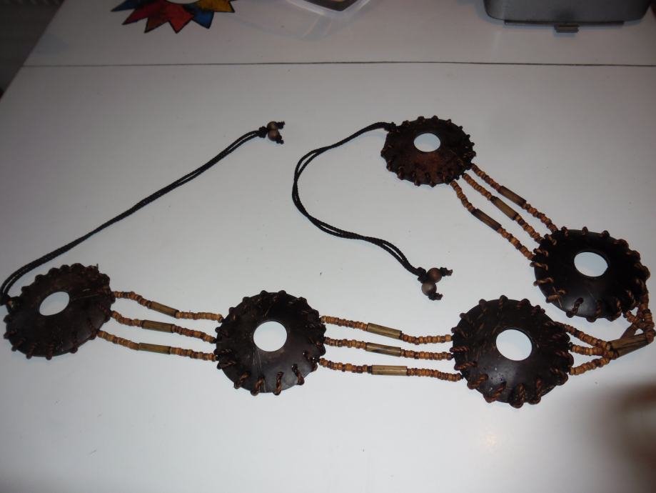 Remen od kokosa, bambusa i drvenih perlica, ručni rad, novi, duljine 140cm