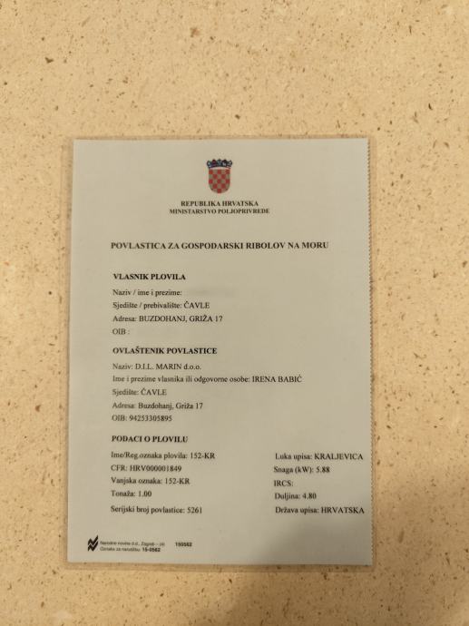 Prodaje se batana sa povlasticom spremna za rad zvati isključivo na 098 9834165.