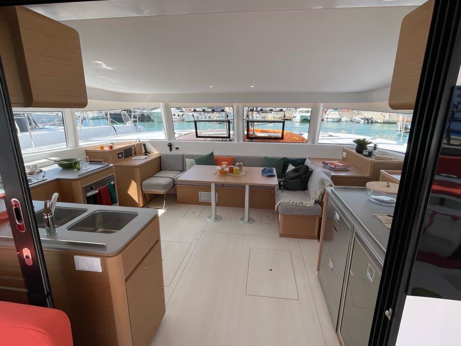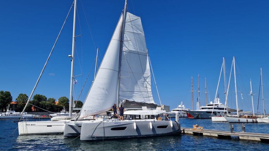 Novi model performance katamarana od Jeanneau,full oprema.Katamaran je opremljen maximalnom snagom mozora koja moze ici 2x57ks Janmar,elektronske komande sto je rijetkost na takvim brodovima,klima,generator,inverter,tri frizidera ukjucujuci vanjski izvlacni,ventilatori u svim kabinama i salonu,straznji nosac za gumu,gumenjak 310+penta idr…