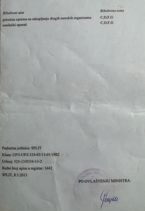 -Alati: Upisani su ronilački aparati i priručna oprema za sakupljanje drugih morskih organizama.