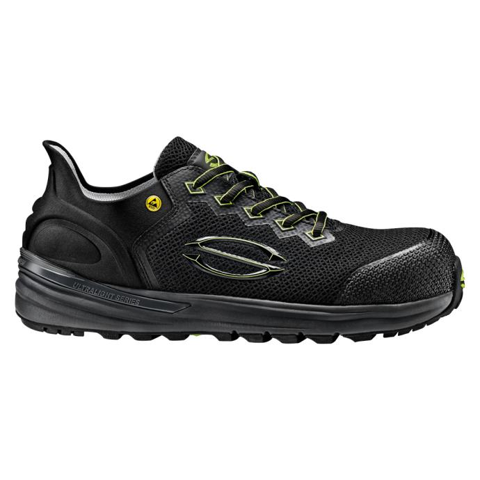 Ultralagana niska zaštitna obuća bez metala (S1PS) s mrežastim gornjištem i slip-on sustavom za brzo obuvanje i izuvanje.