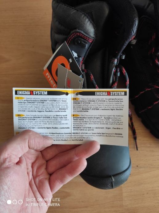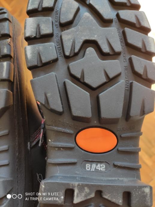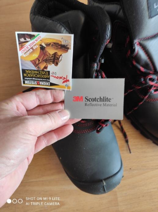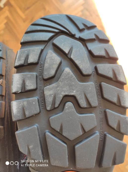 Potpuno nove, imaju zaštitnu metalnu kapicu za prste, potplat/đon je protusklizni i otporne su na naftu i naftne derivate.