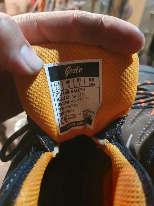 Bez metalnih djelova, zaštitna kapica je od plastike. Gornji dio od kože a potplata otporna na ulje.
