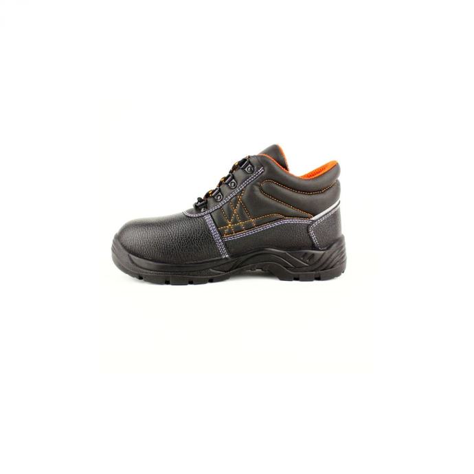 Opis: Visoke zaštitne cipele u crnoj koži sa postavljenim jezikom za bolju udobnost i zaštitu