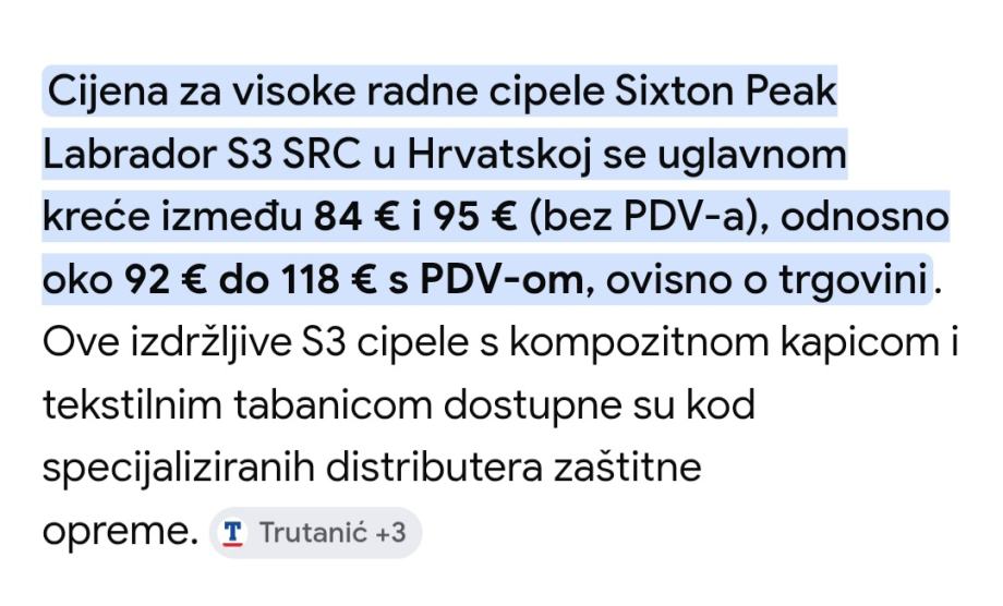 Cijena, jedan par 50€. Dva para 90€. Tri para 120€.