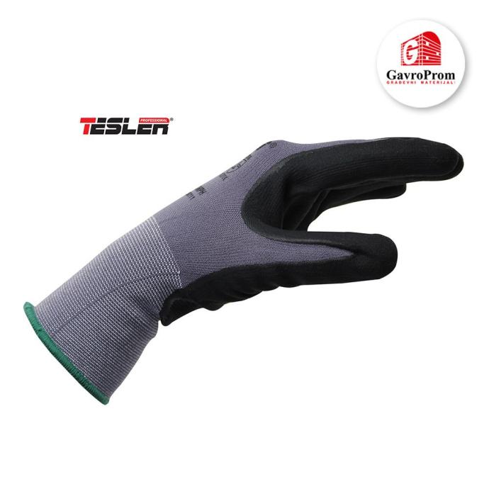- Sivo poliamid/elastan pletivo, s crnim nitrilnim (NBR) naslojem dlana i prstiju
