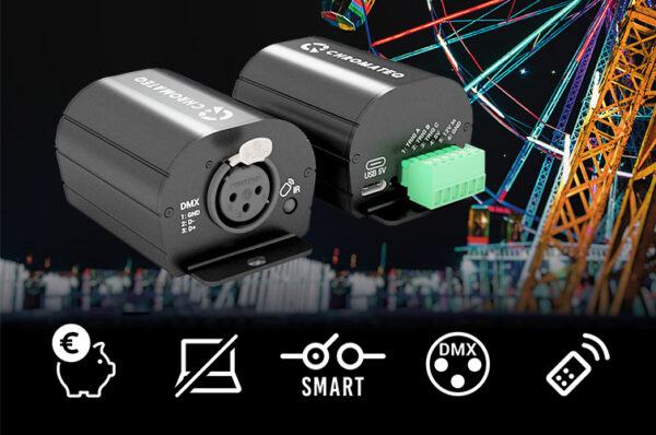 Chromateq CLUB 128 je novi profesionalni DMX interfejs dizajniran za male budžete i korisnike koji traže DMX controller jednostavan za korištenje za različite potrebe: UŽIVO direktnim upravljanjem ili PREDPROGRAMIRANI "Stand Alone" način rada. Atraktivne cijene idealne su za ograničene budžete, male projekte, testiranje DMX sustava, učenje ili promotivne pakete.