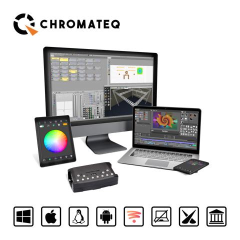 Kontroler je kompatibilan sa svim Chromateq programima ("Pro DMX 2", "LED Player", "PRO DMX", "PIXXEM", "Studio DMX"), može se integrirati u skalabilne upravljačke sustave dizajnirane za izvedbu uživo ili fiksnu instalaciju ili implementirati pojedinačno bez računala kao elegantno jednostavno, ali sofisticirano samostalno upravljačko rješenje. Svi ti programi za upravljanje rasvjetom su besplatni i svaki Chromateq uređaj ili sučelje otključava određene funkcionalnosti i broj universa.