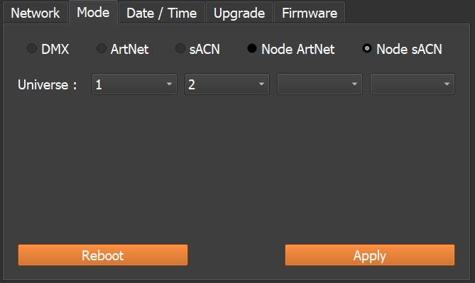 Podržani ulazni protokoli: Art-Net, sACN, 2 universa (2x 512)