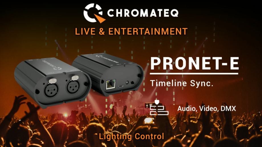 PRONET-E je dizajniran za zahtjevne projekte koji zahtijevaju veliki broj DMX/Art-Net kanala. Softveri nude do 24-satnu sinkronizaciju audio i video vremenske trake, Midi vremenski kod, okidače PC sata i snimanje vremenske trake uživo (u hodu). Spajanjem na računalo možete u Chromateq softveru otključati nekoliko Art-Net universa koji će biti upravljani putem računalne mrežne kartice. Idealan DMX controller za sve korisnike, iskusne stručnjake za rasvjetu i zahtjevne projekte, ističe u kontroli nastupa uživo, sinkronizaciji audio i video vremenske trake, te preciznoj automatizaciji zvuka i svjetla, koristeći BESPLATAN softver Chromateq "PRO DMX 2", koji svako računalo pretvara u moćnu konzolu za upravljanje rasvjetom. S dobrim kapacitetom interne memorije, također možete koristiti u samostalnoj (standalone) aplikaciji i koristiti ga s mobilnim BESPLATNIM softverom "Wi-Light 2" kada je spojen na WIFI.