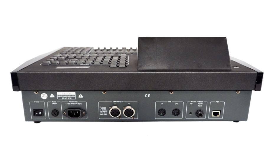 Lighting Controller , 1024 channels with 2 individual optical isolated DMX outputs and Net-work interface, 7" TFT-LCD touch screen for operating, 3 colour backlite keyboard, R20 library files , USB interface , flight case included , 10kg.