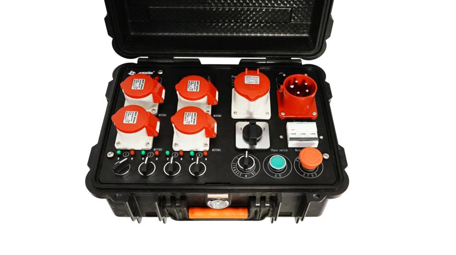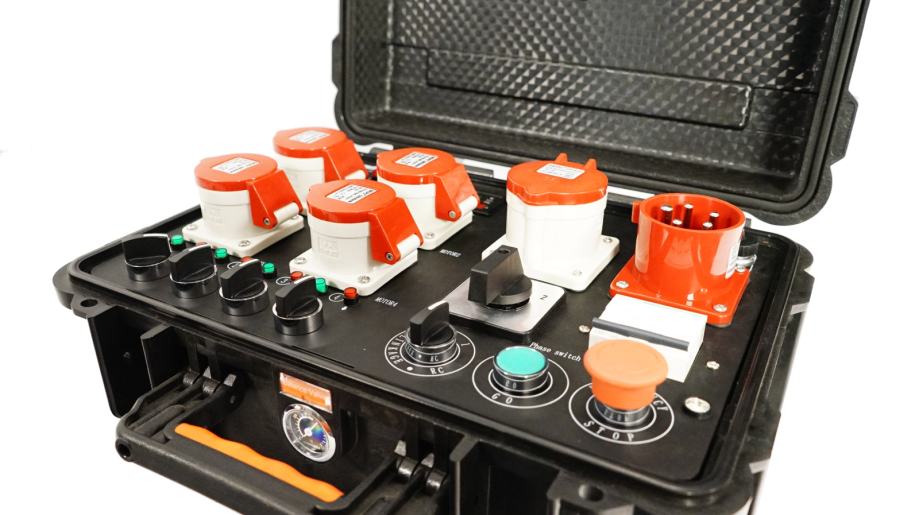 Portable electric motor 4 way controller ,waterproof plastic suitcase, emergency power and operation buttons: lift and fall control switches.