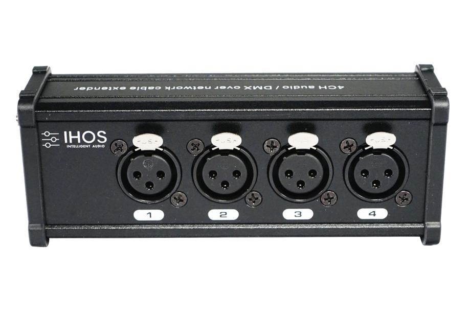 4CH over network cable extender, CAT5E cable can used to transmit audio signal, AES/EBU digital signal, DMX signal, female?RJ45, 4 x female XLR.