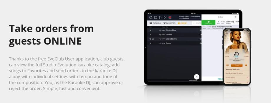 Online naručivanje pjesama putem aplikacije EvoClub User.