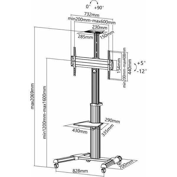 Mobilni stalak za TV je SBOX FS 446 - aluminijski stalak na kotačima.